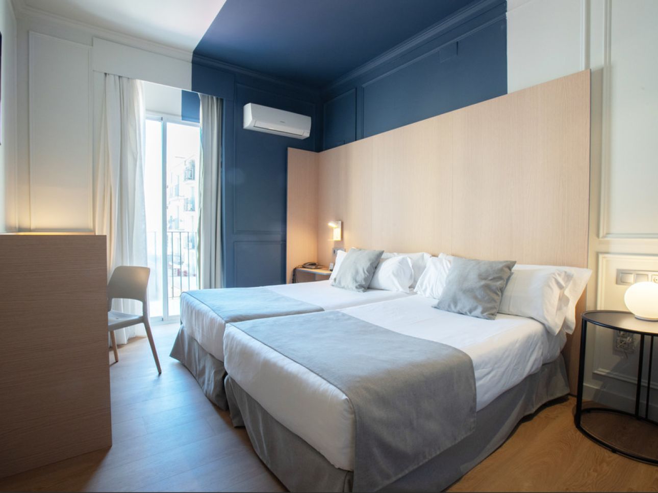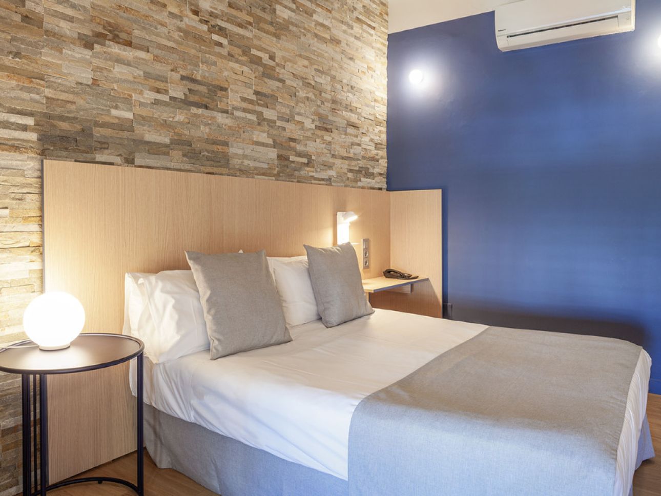 Acogedora habitación con cama doble, que ofrece una estancia única en Valencia. Totalmente equipada: WIFI Gratuito - Cargador USB - Teléfono - Aire acondicionado - Escritorio - TV con pantalla plana - Caja fuerte - Nevera - Baño completo.