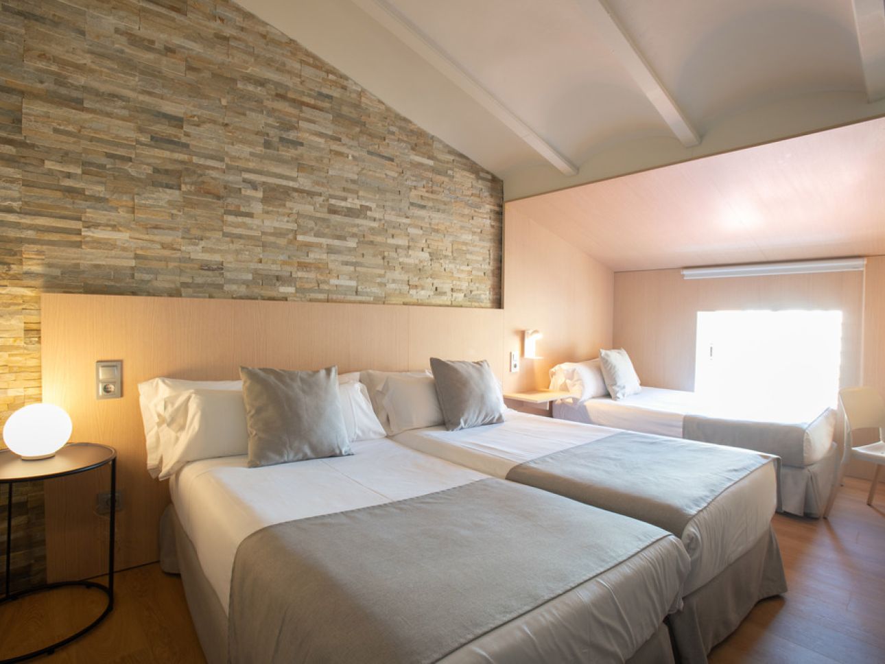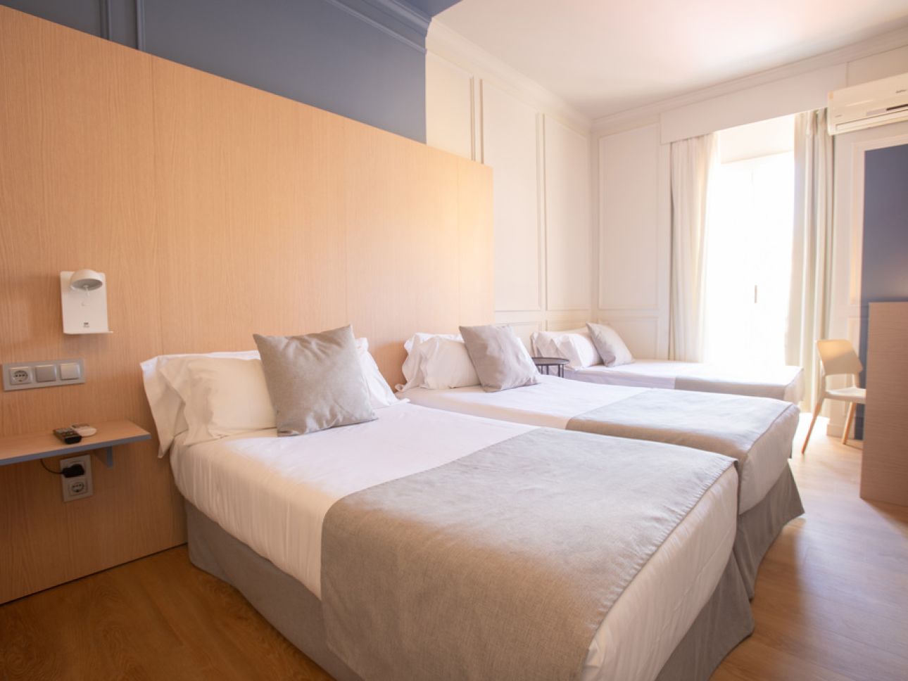 Habitación perfecta para disfrutar de viajes en familia o con amigos. Equipadas con 3 camas de 105 cm descansa en esta acogedora habitación que incluye: WIFI Gratuito - Cargador USB - Teléfono - Aire acondicionado - Escritorio - TV con pantalla plana - Caja fuerte - Nevera - Baño completo